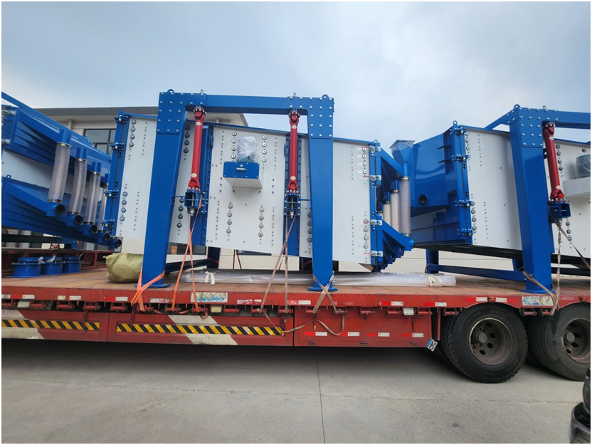 本次發(fā)貨的是客戶在原有的壓裂砂生產(chǎn)線增加篩分產(chǎn)能,新增加三臺2040型雙四層方形搖擺篩分系統(tǒng),由FU刮板機、篩分暫存?zhèn)}、流量控制蝶閥、散風裝置及成品輸送系統(tǒng)組成。